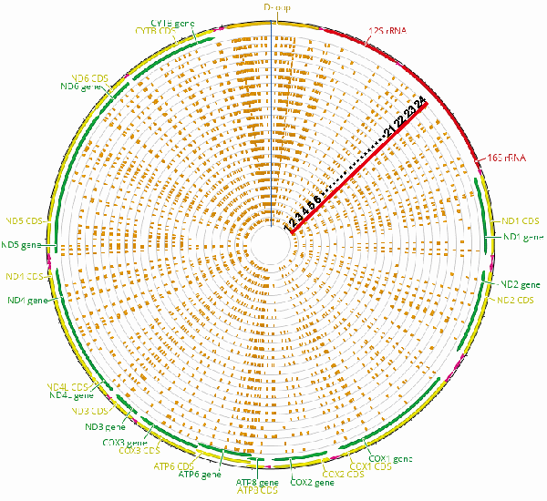 ミトコンドリアの遺伝子変異を検出。こちらは24の大腸癌細胞株の変異を調べたもの。