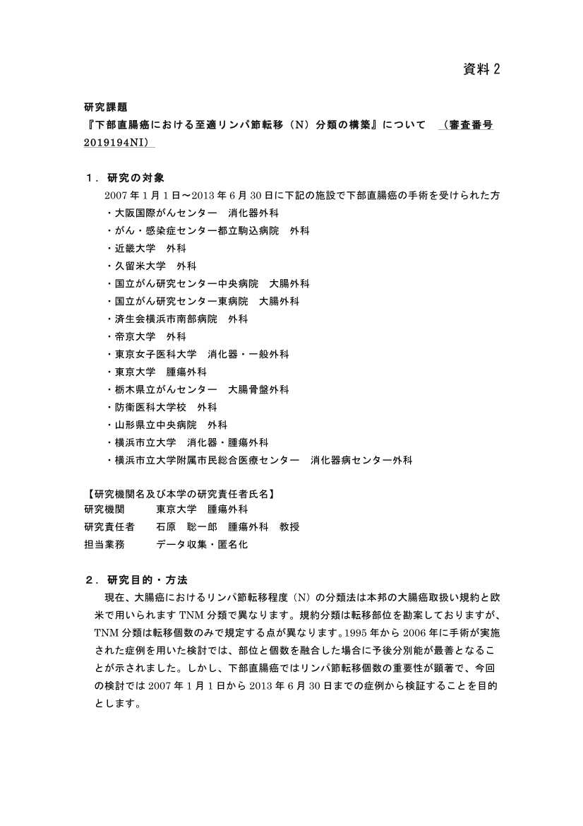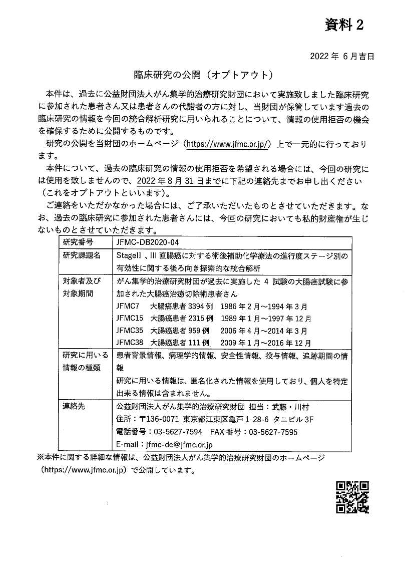 ・StageⅡ、Ⅲ直腸癌に対する術後補助化学療法の進行度ステージ別の有効性に関する後ろ向き探索的な統合解析 [研究番号 JFMC-DB-2020-04]