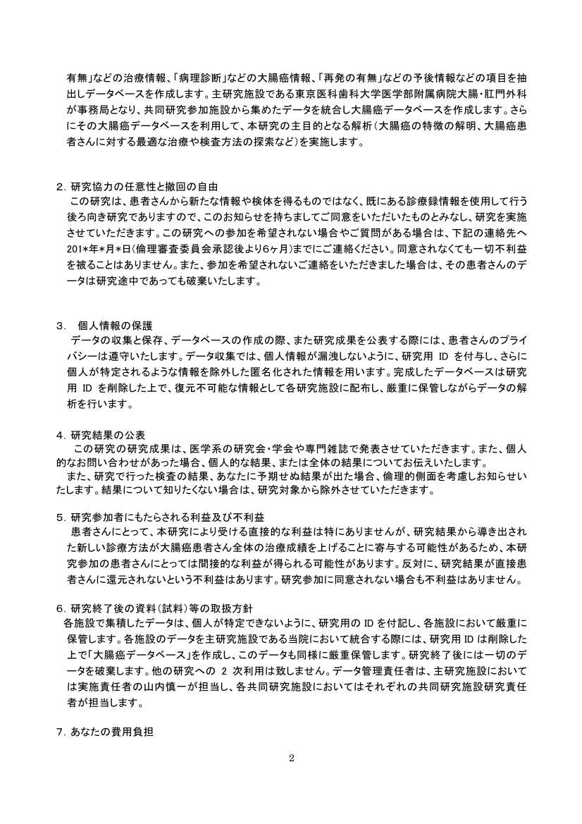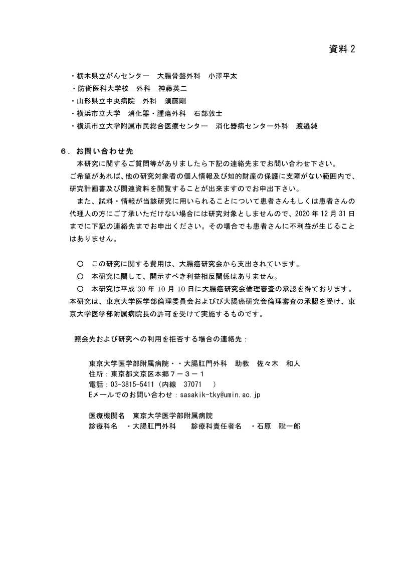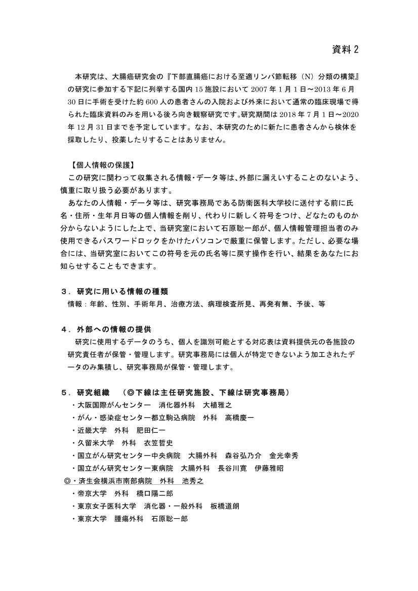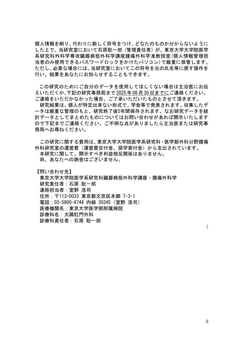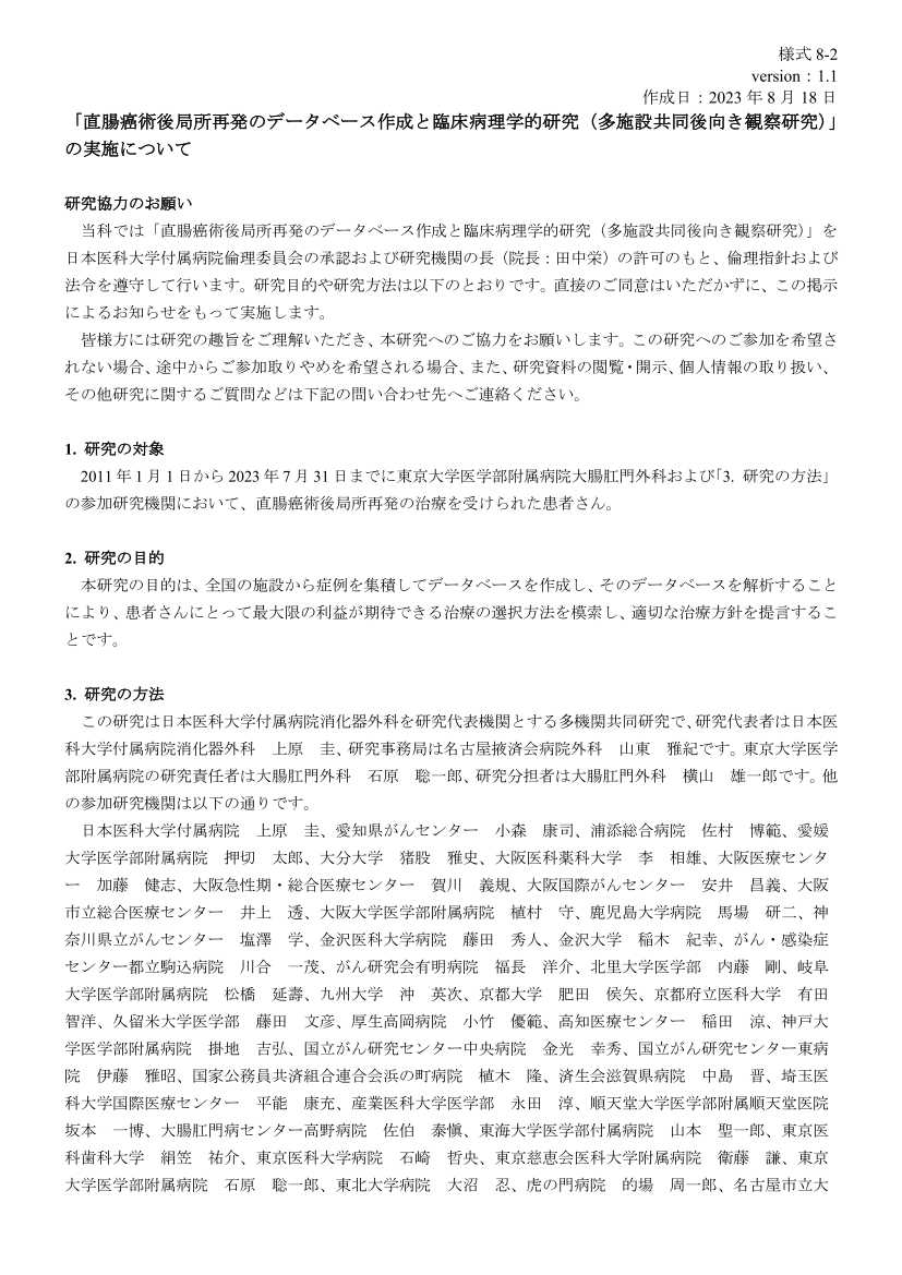 ・一般社団法人 National Clinical Database (NCD) の手術・治療情報データベース事業への参加について(大腸肛門外科)