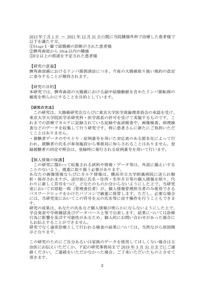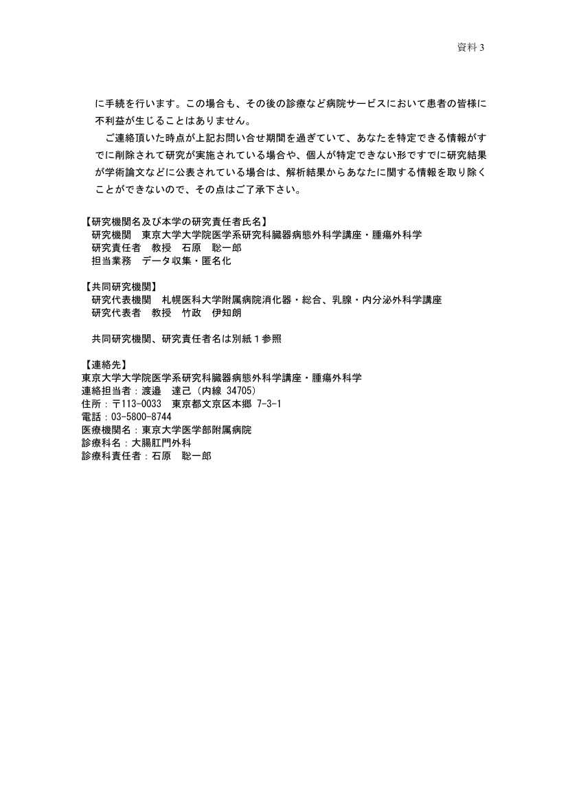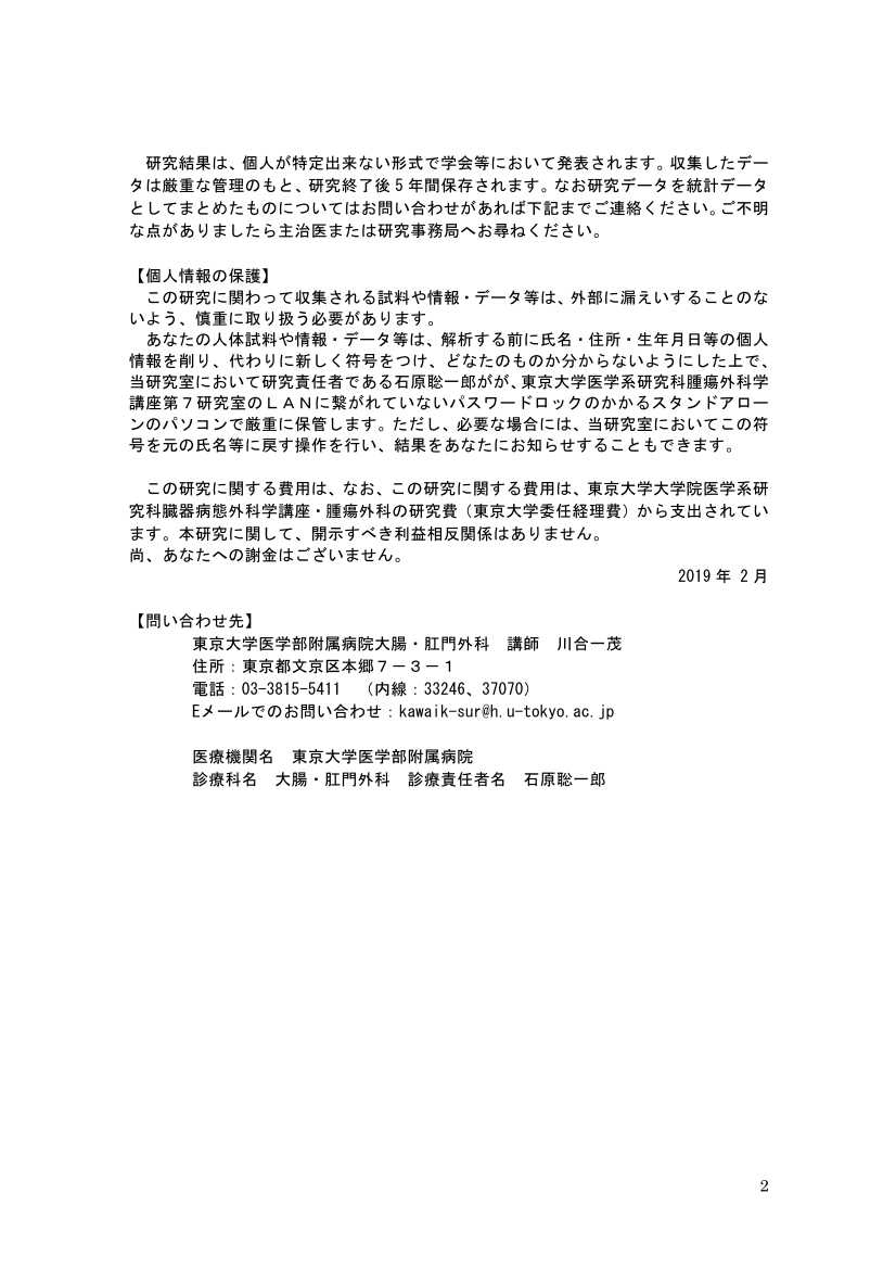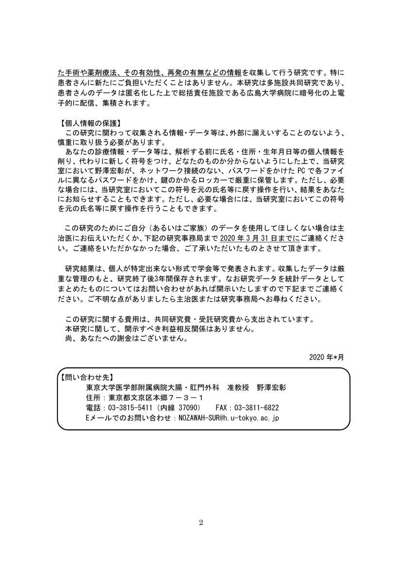 ・一般社団法人 National Clinical Database (NCD) の手術・治療情報データベース事業への参加について(大腸肛門外科)