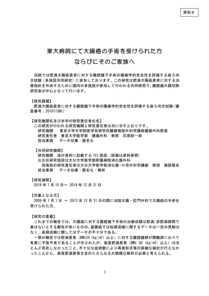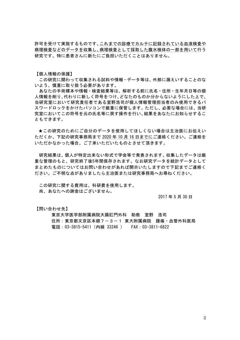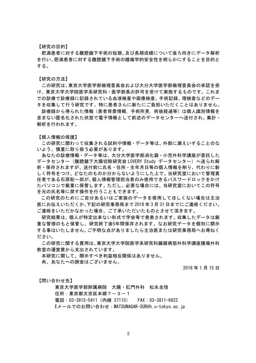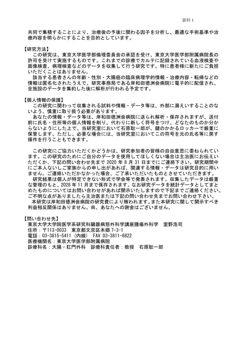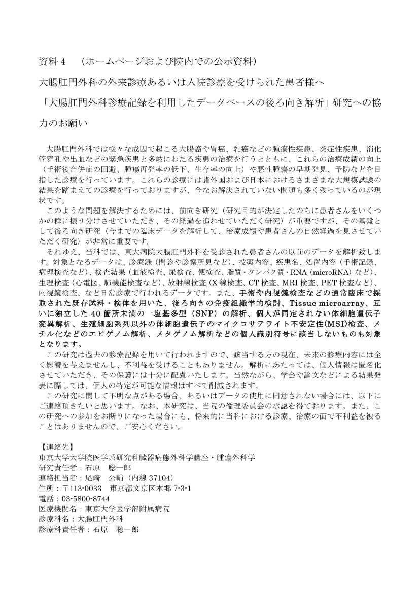 ・一般社団法人 National Clinical Database (NCD) の手術・治療情報データベース事業への参加について(大腸肛門外科)