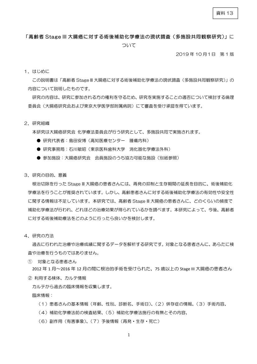 ・高齢者StageⅢ大腸癌に対する術後補助化学療法の現状調査