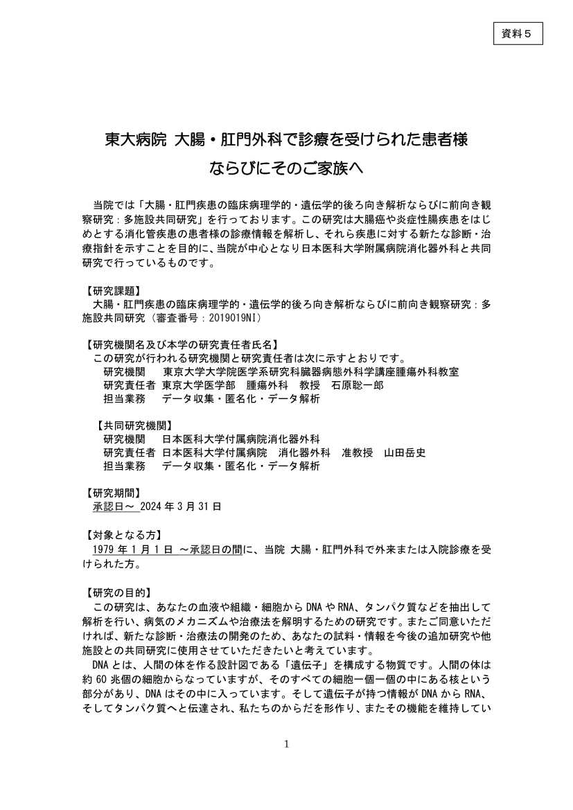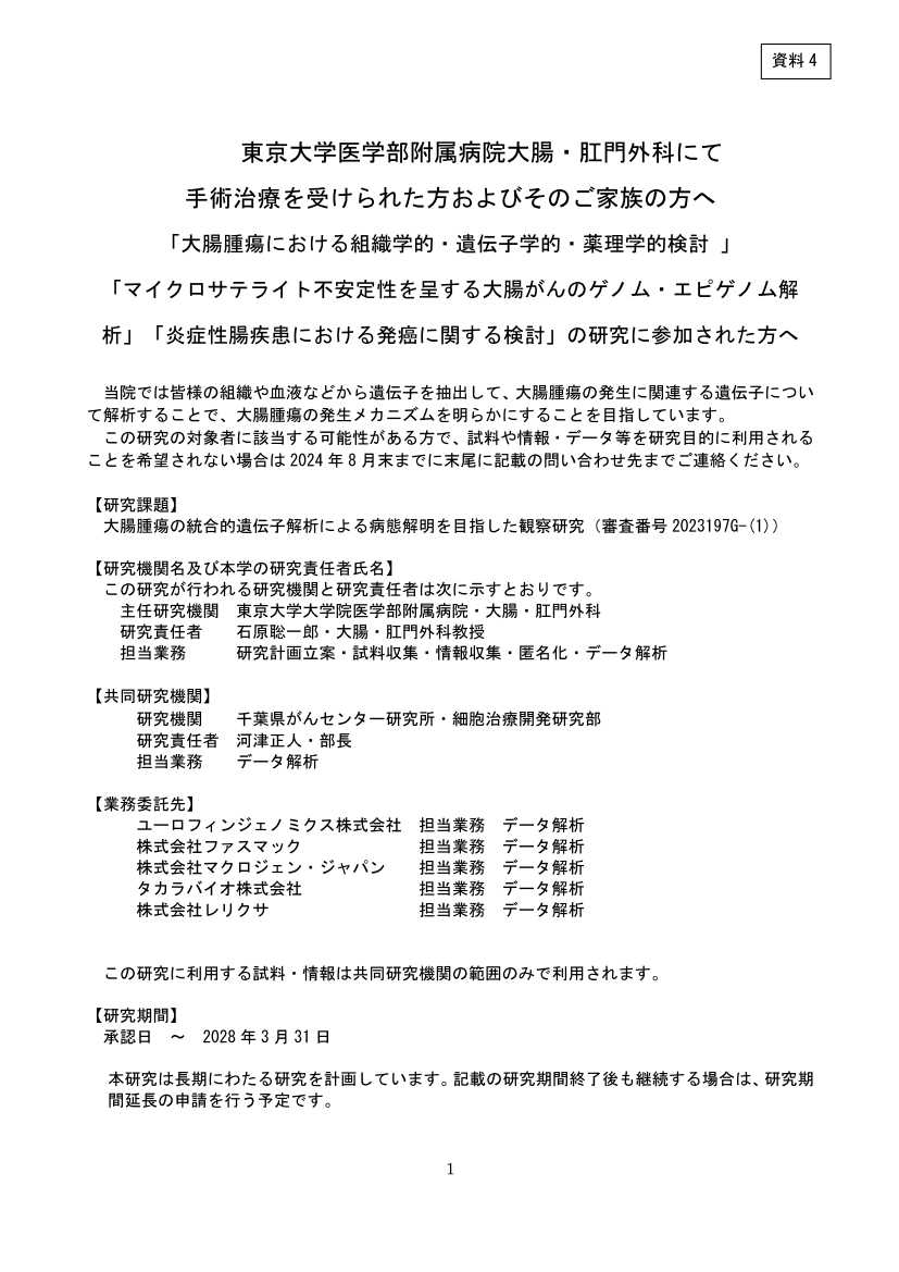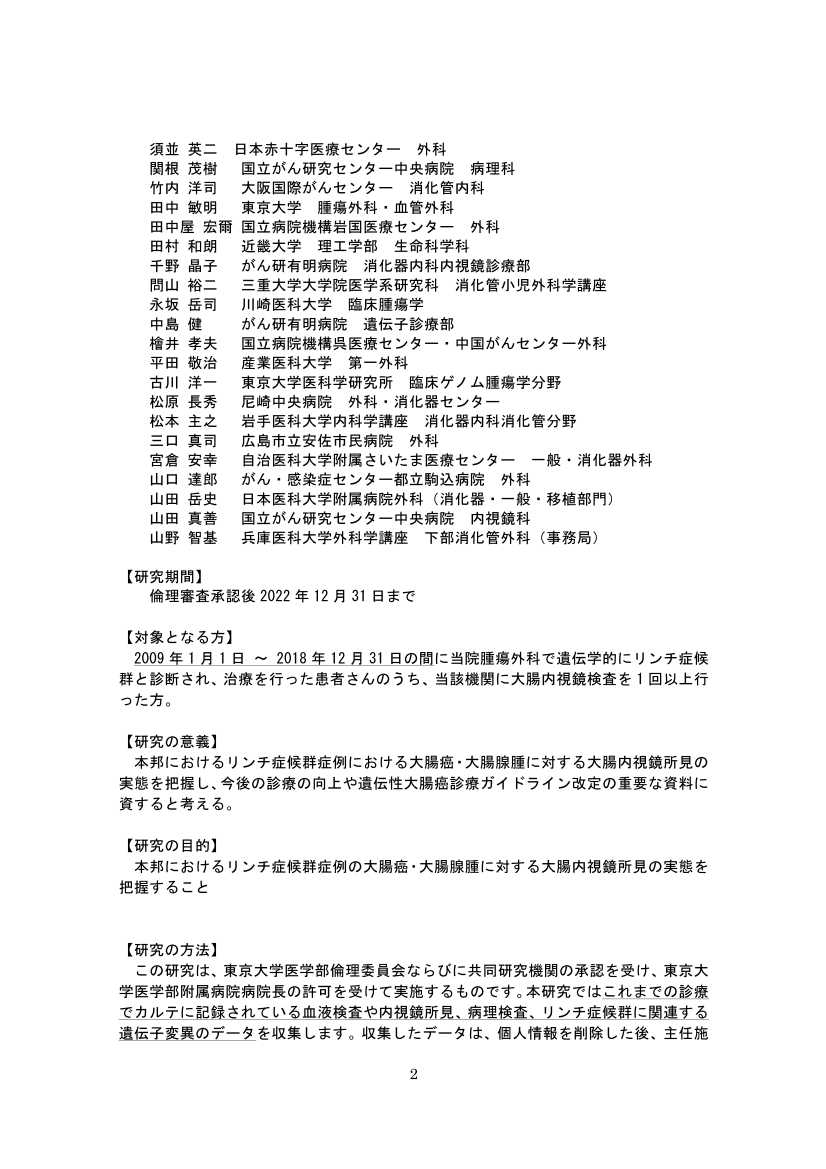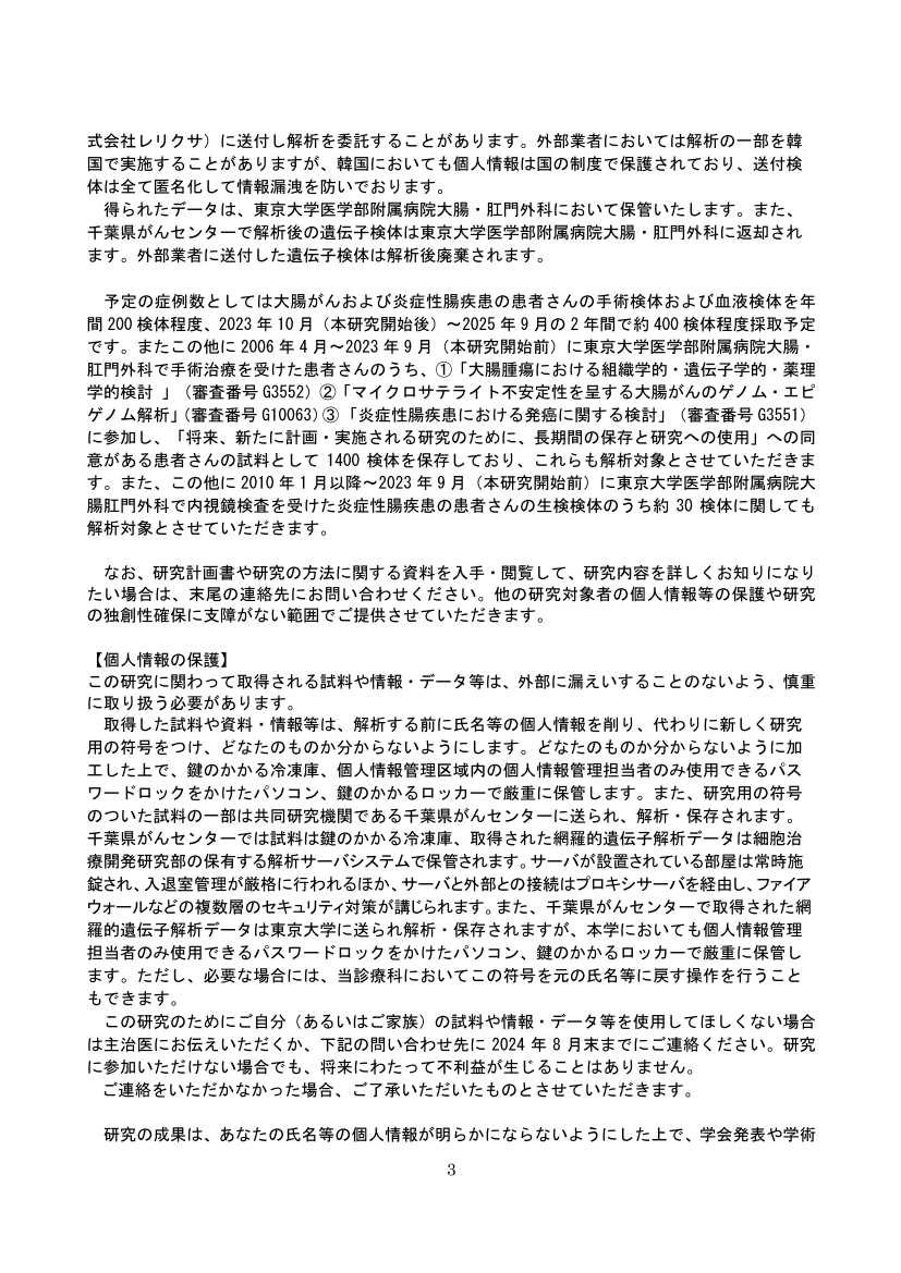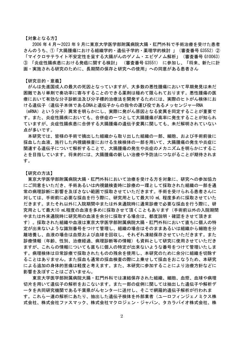 ・大腸腫瘍の統合的遺伝子解析による病態解明を目指した観察研究 [倫理委員会番号2023197G]