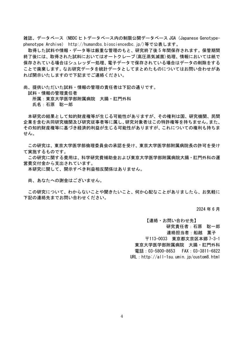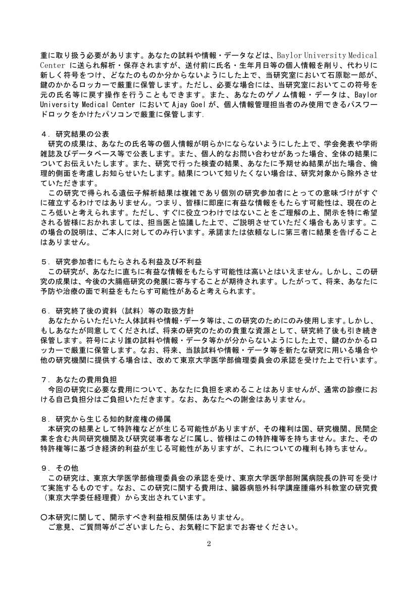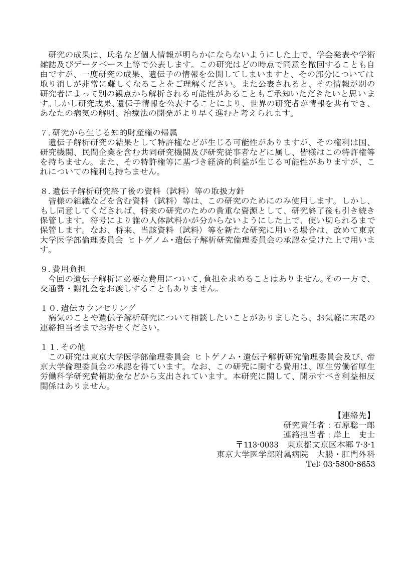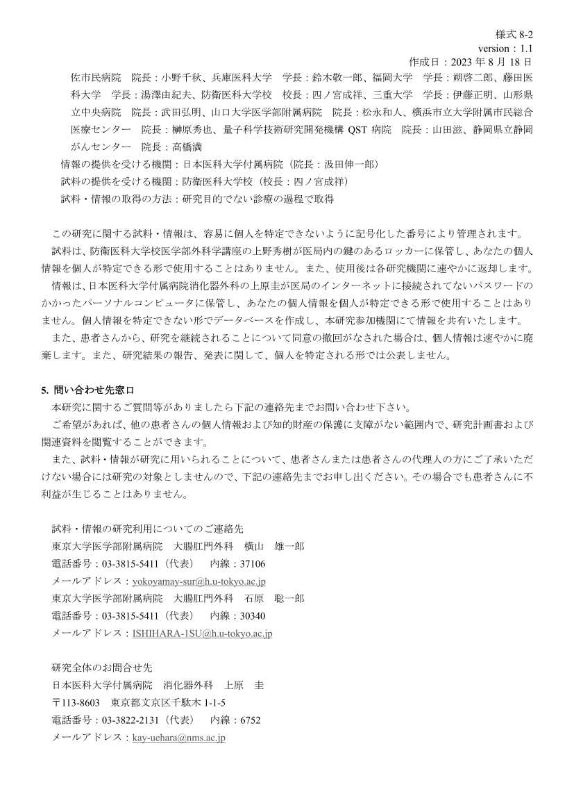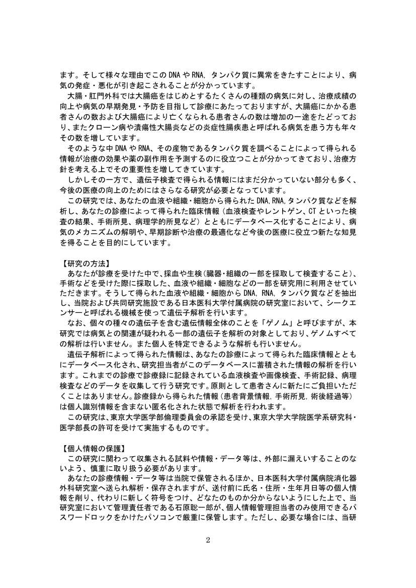 ・大腸腫瘍の統合的遺伝子解析による病態解明を目指した観察研究 [倫理委員会番号2023197G]