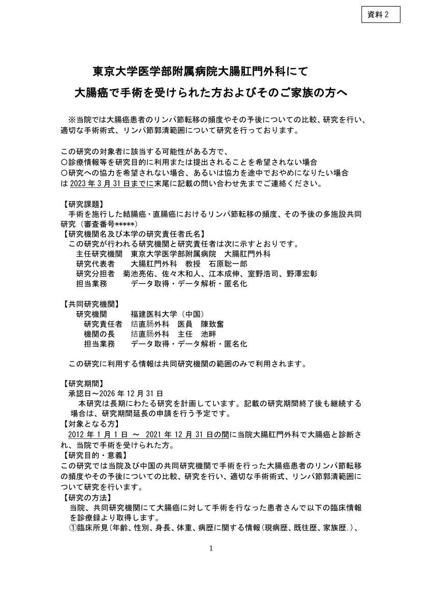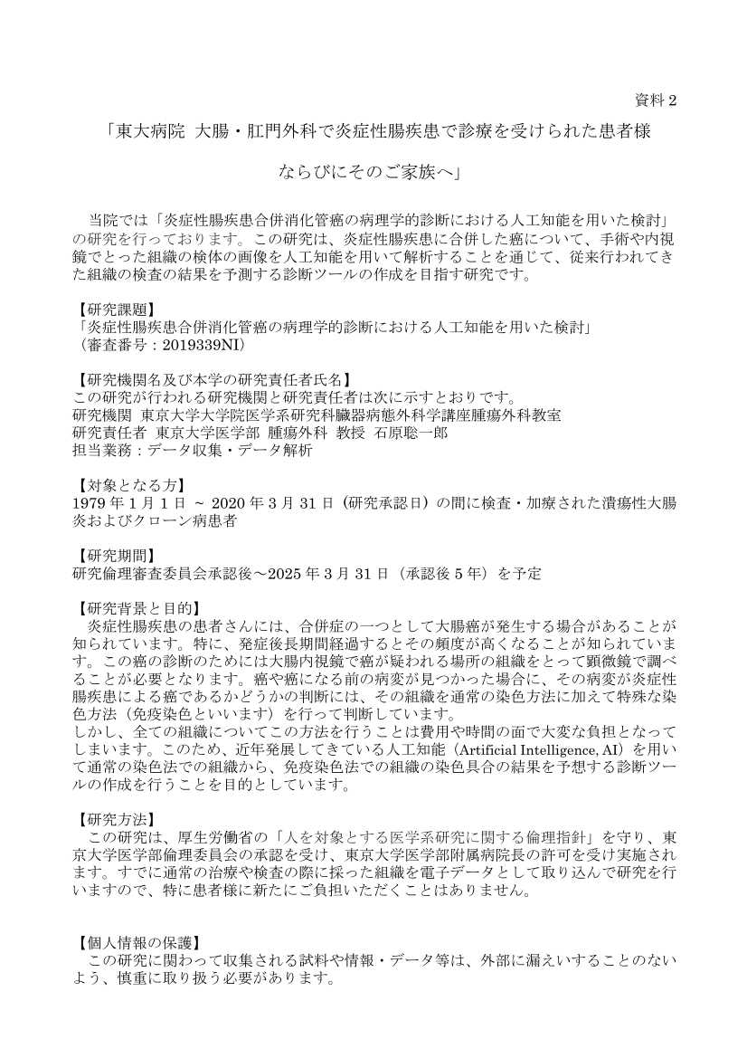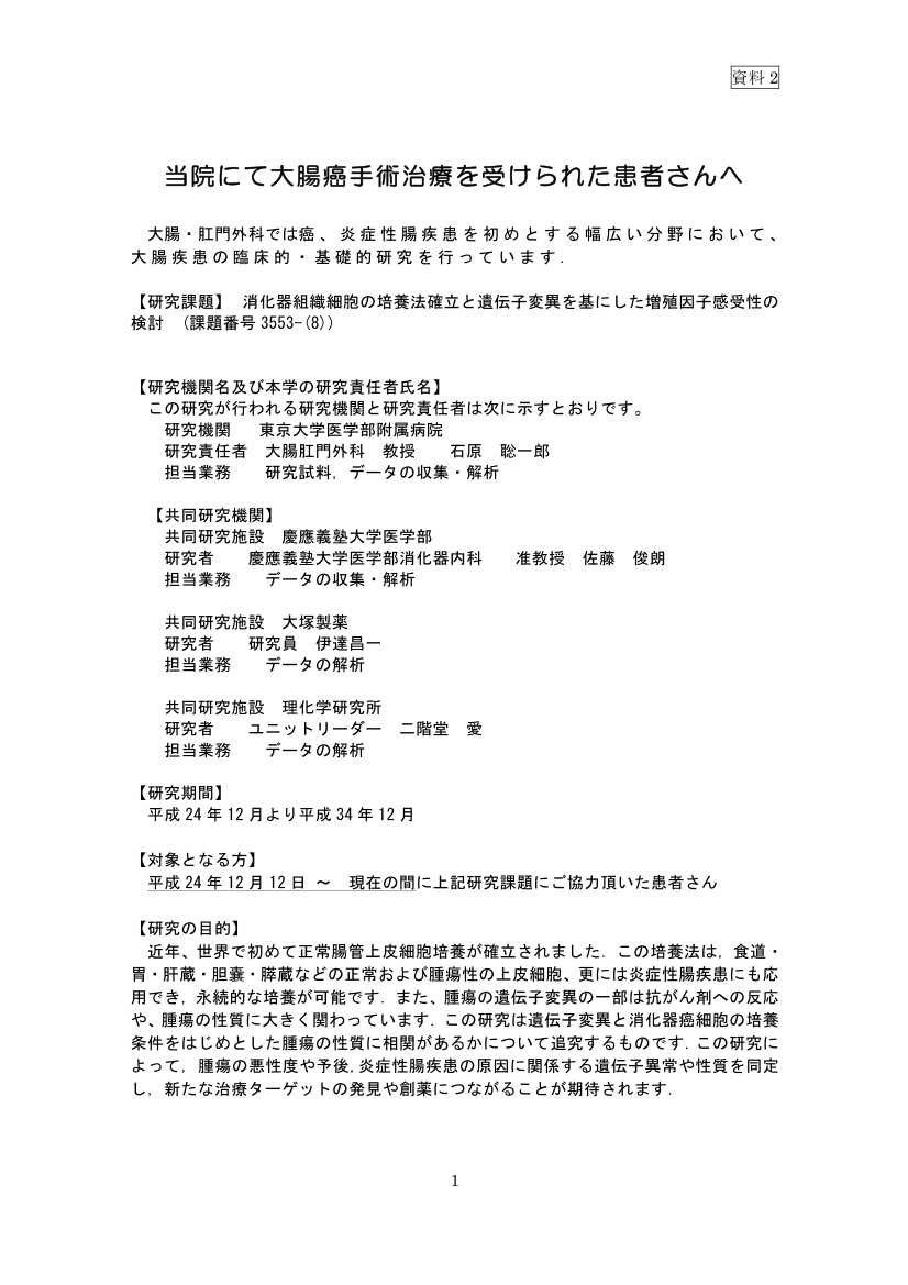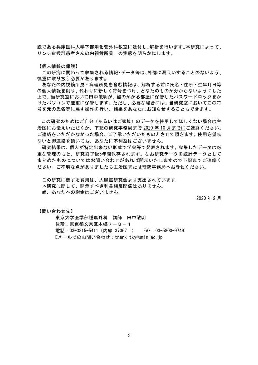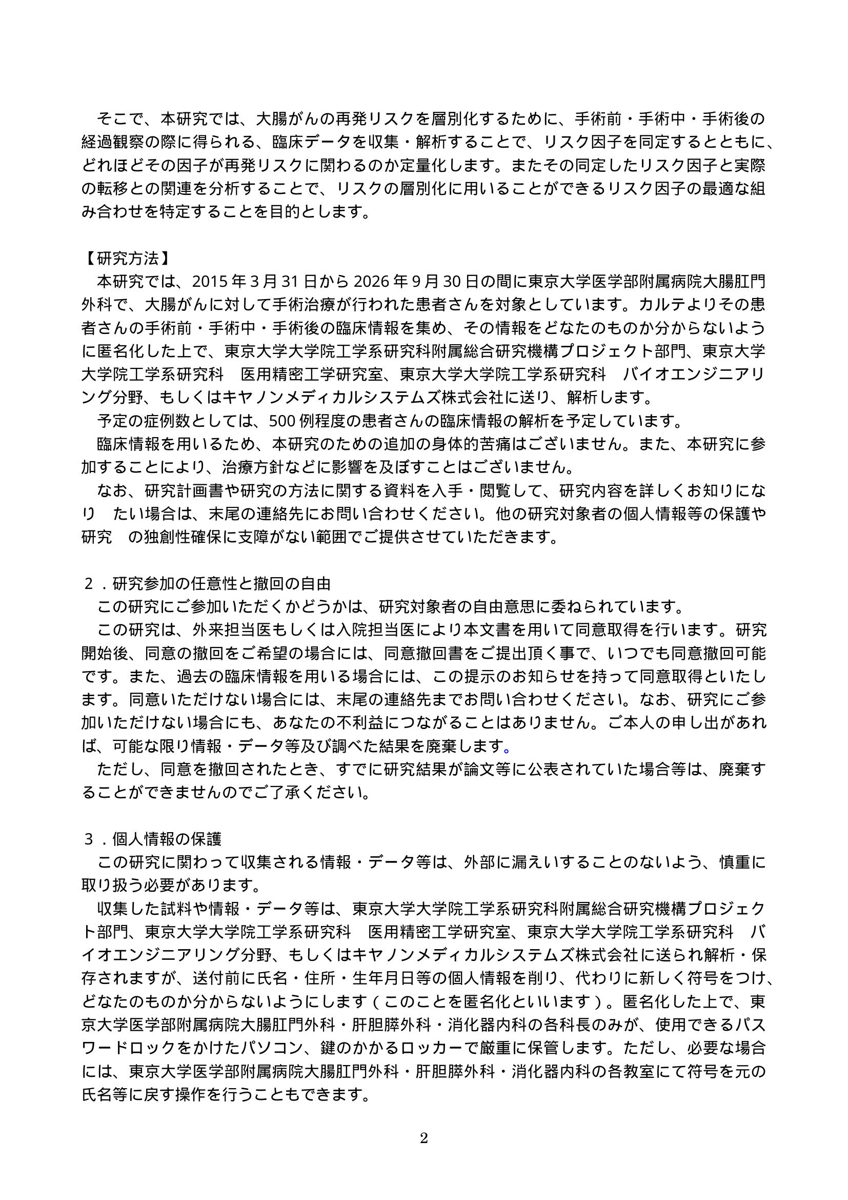 ・大腸腫瘍の統合的遺伝子解析による病態解明を目指した観察研究 [倫理委員会番号2023197G]