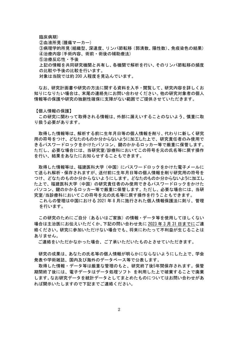 ・手術を施行した結腸癌・直腸癌におけるリンパ節転移の頻度、その予後の多施設共同研究 [倫理委員会番号2022181NI]