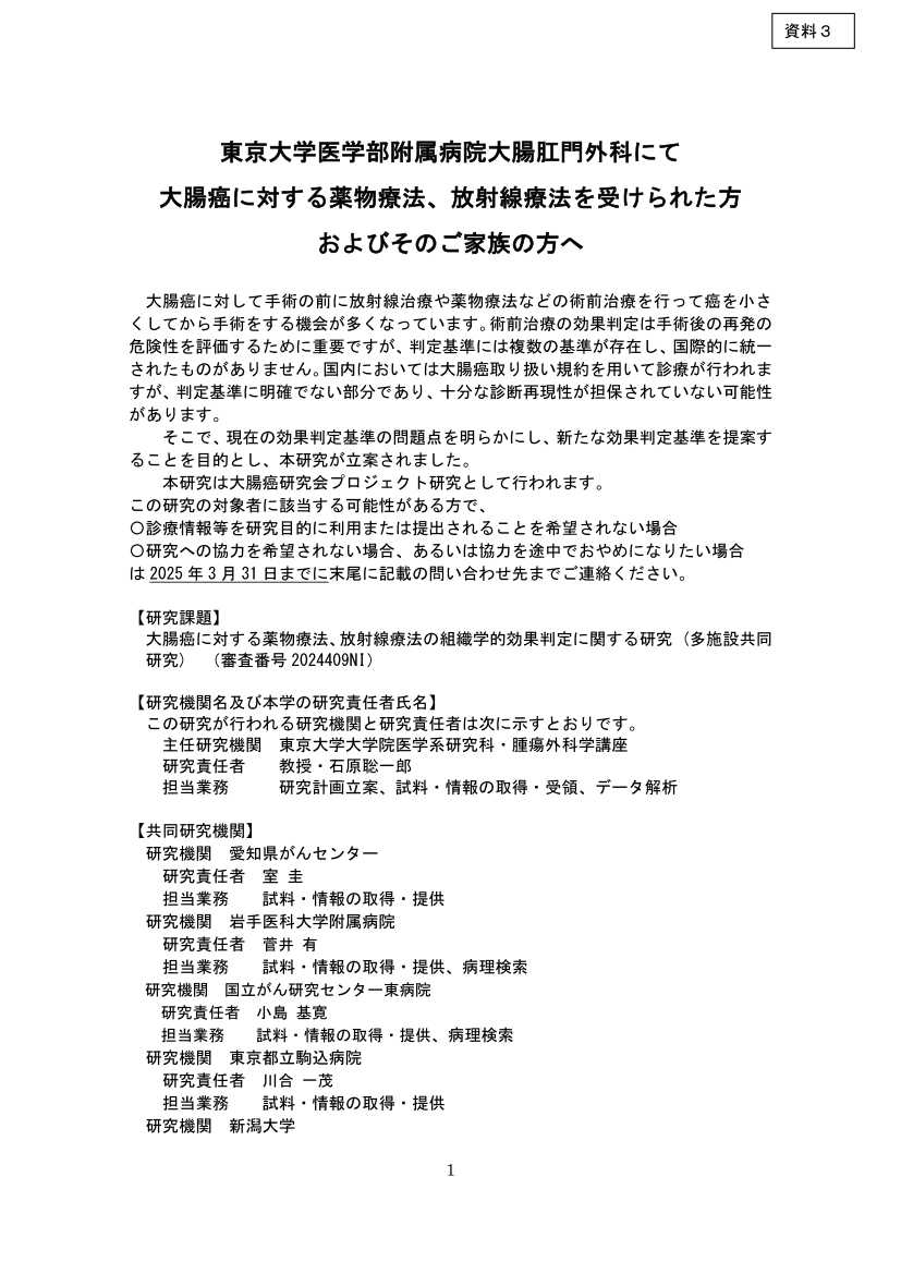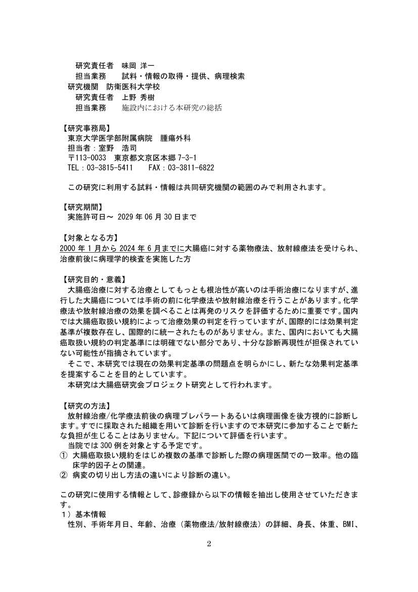 ・大腸癌に対する薬物療法、放射線療法の組織学的効果判定に関する研究 (多施設共同研究)