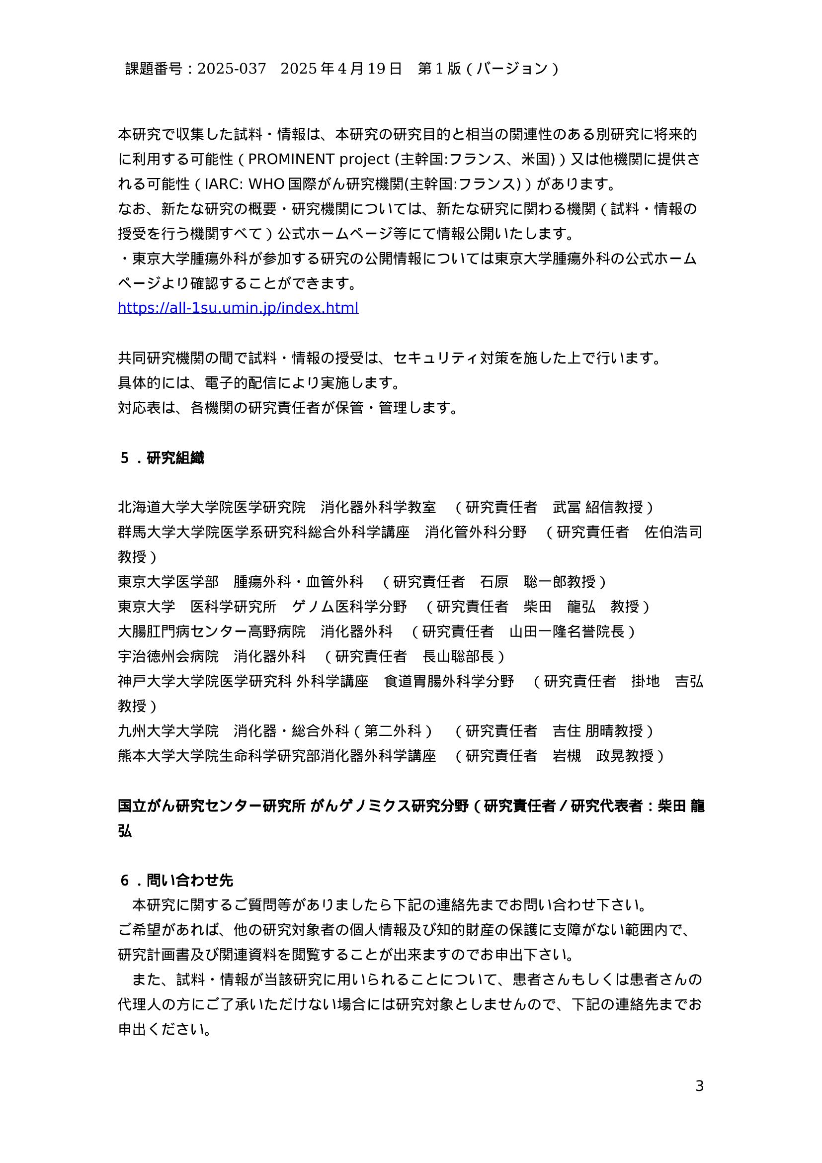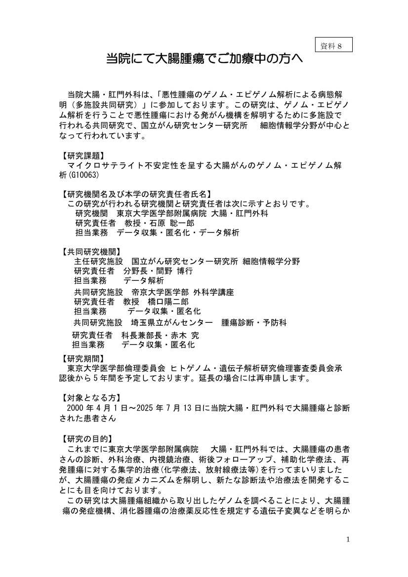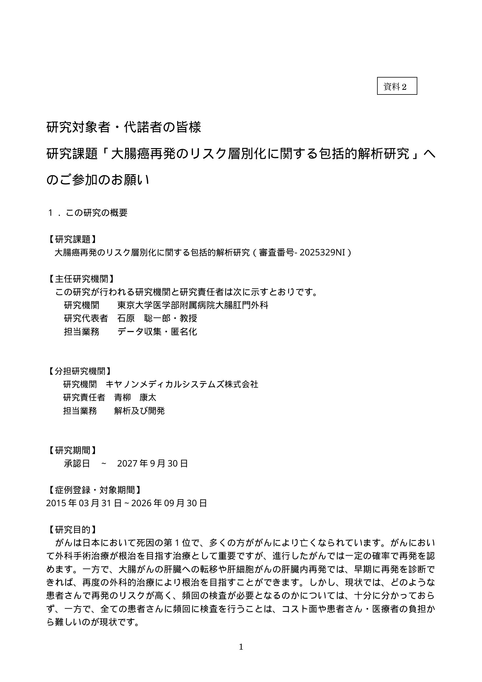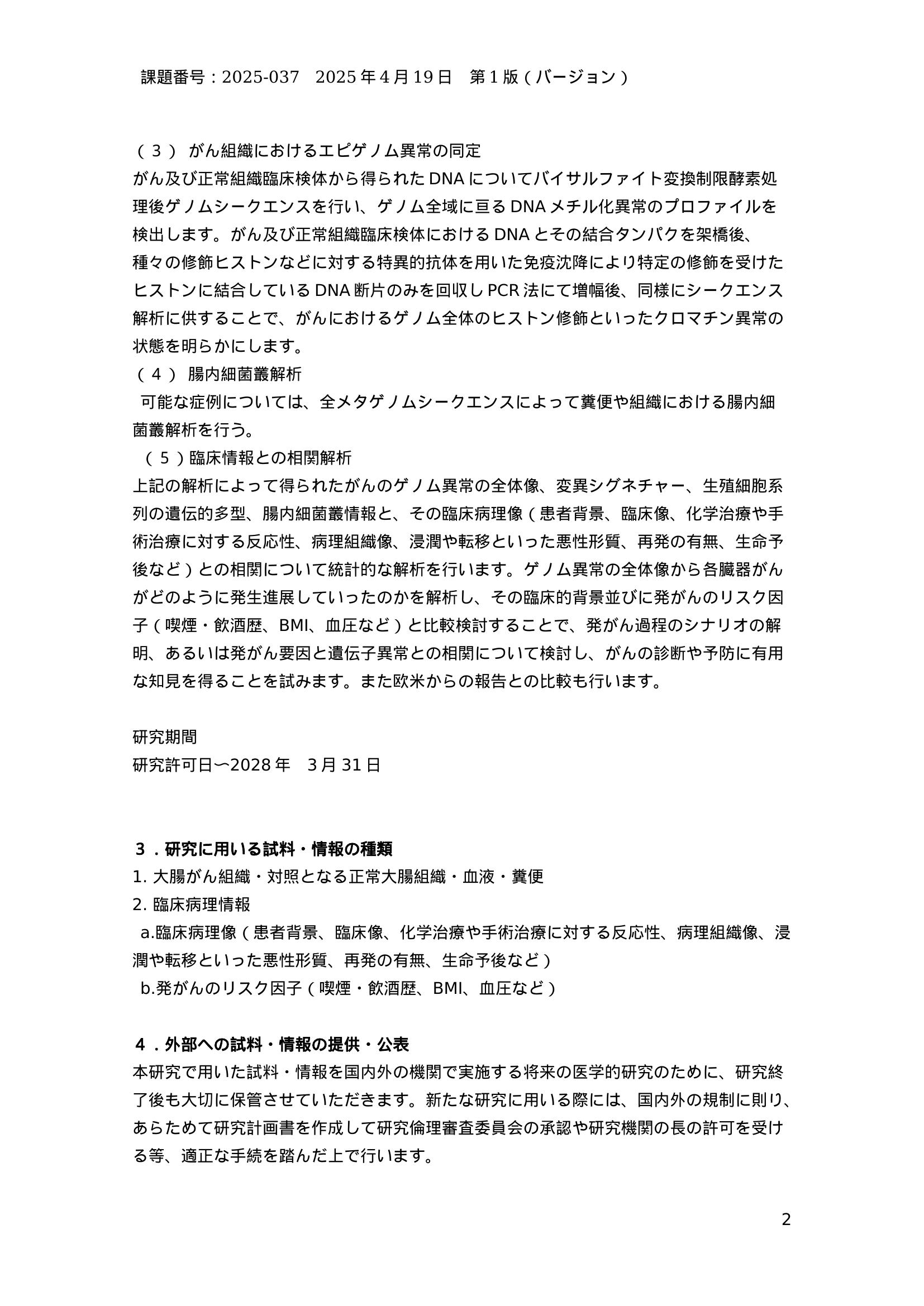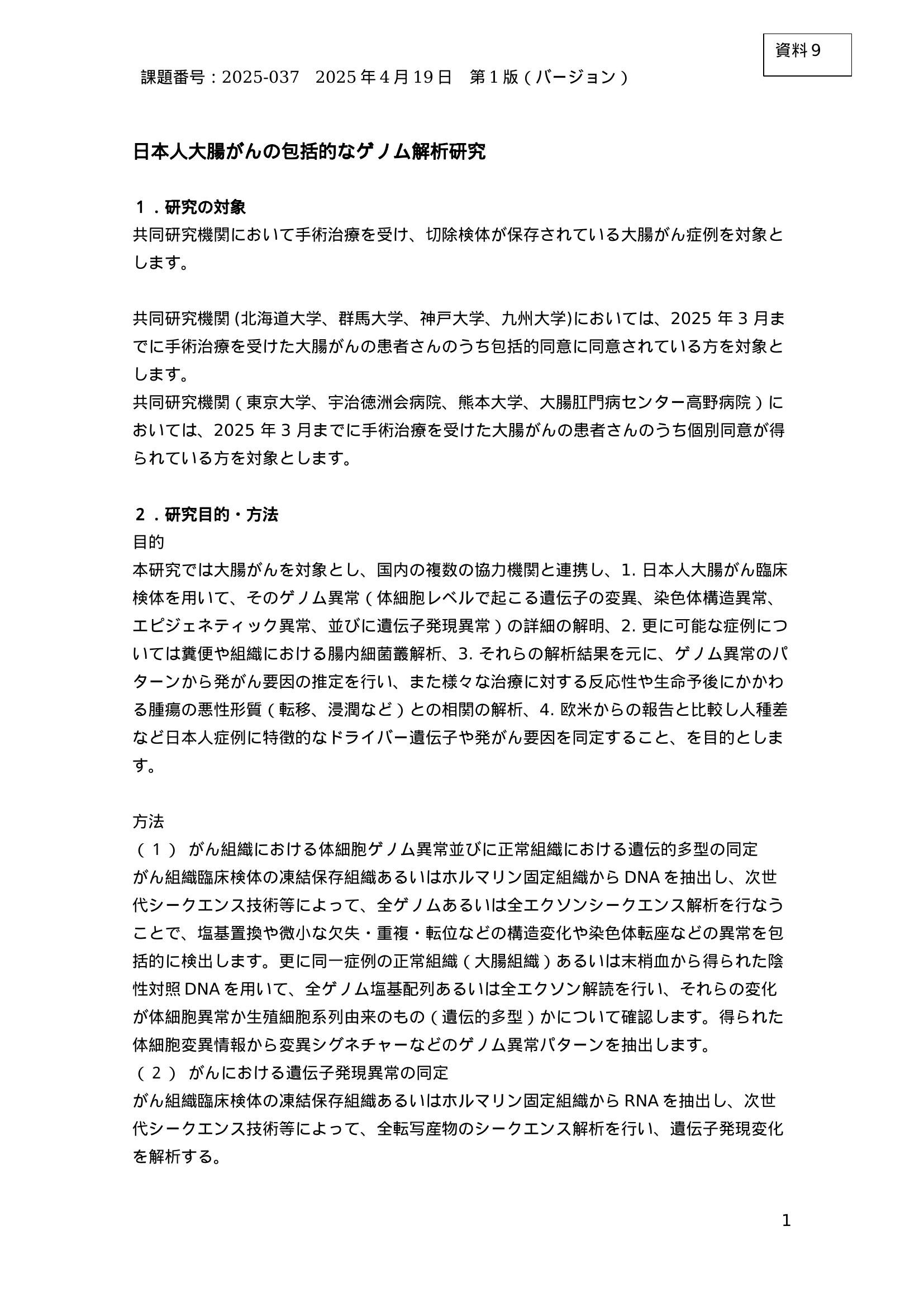 ・日本人大腸がんの包括的なゲノム解析研究 [倫理委員会番号2025413Ge]