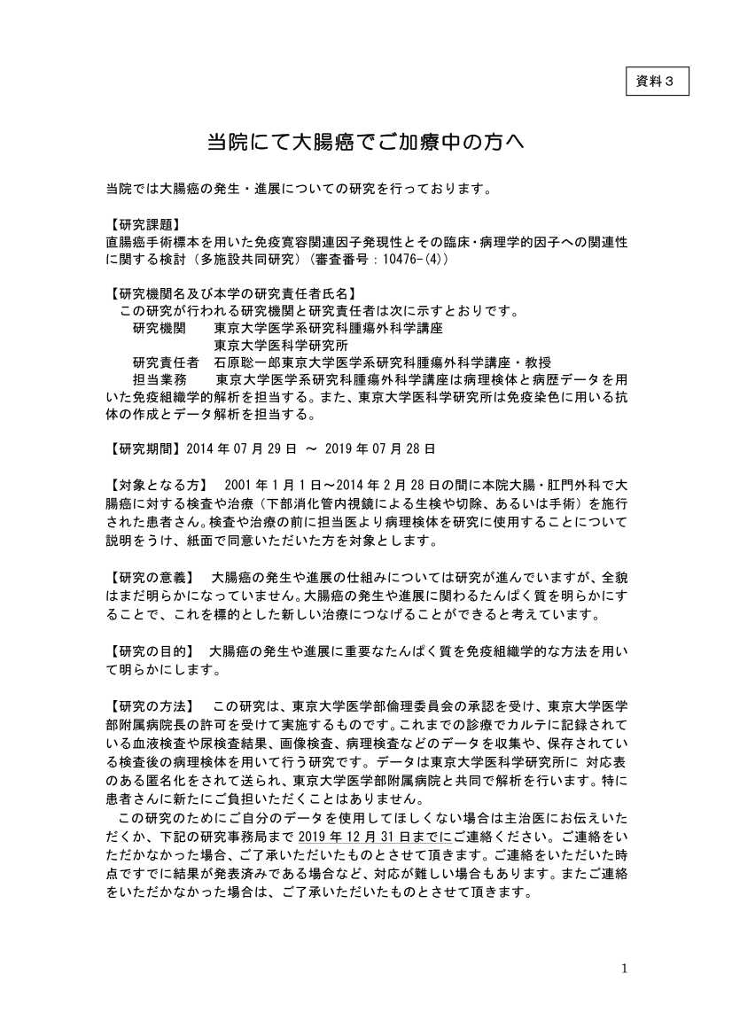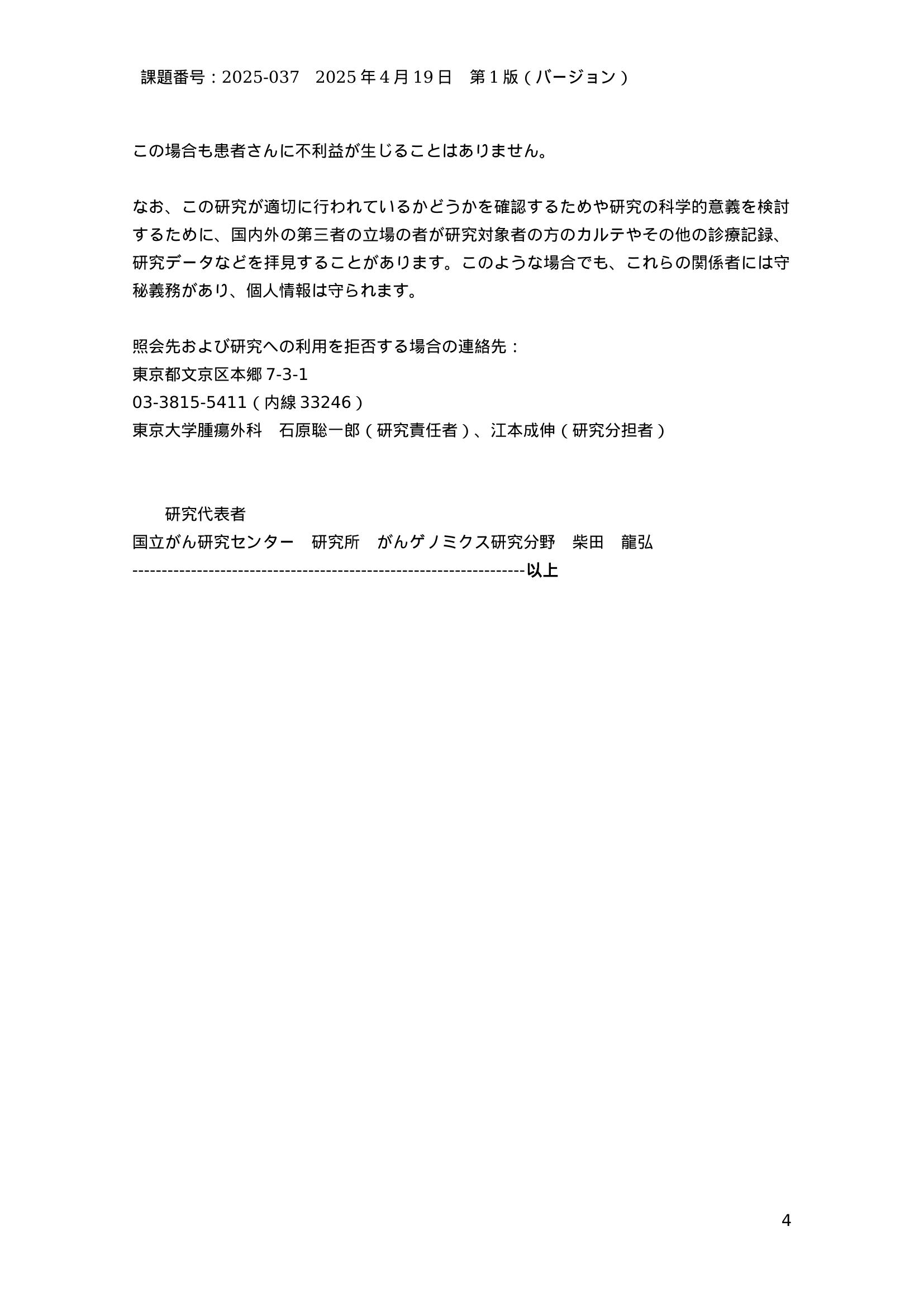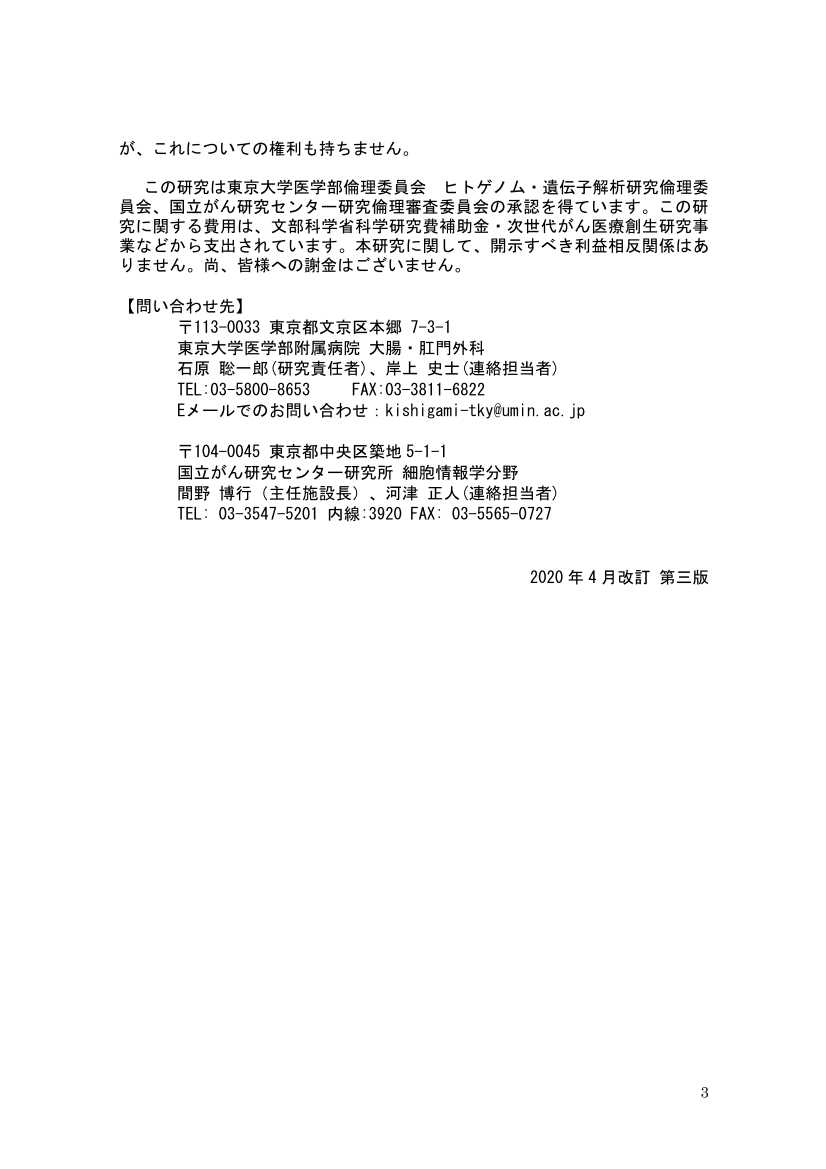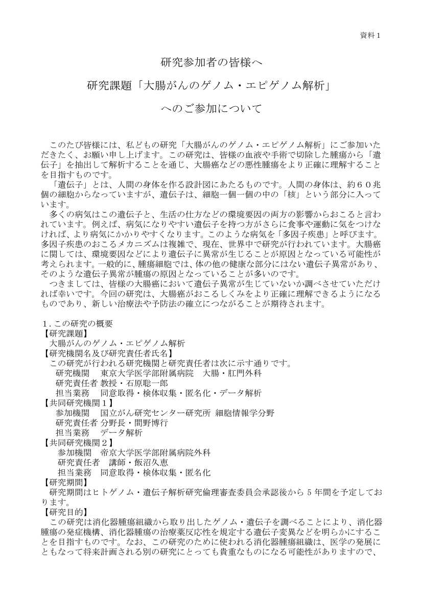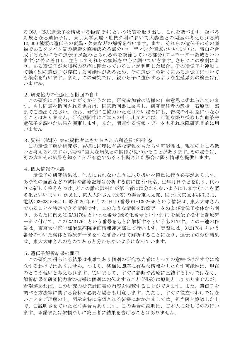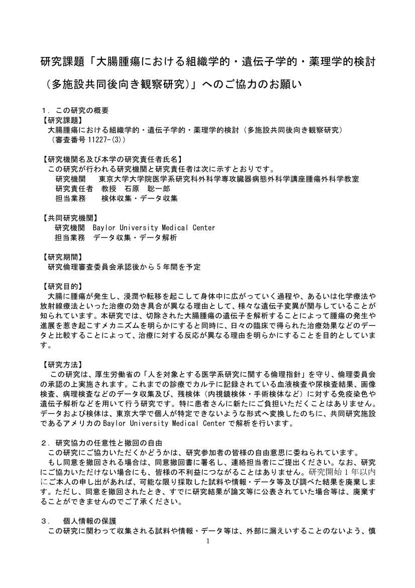 ・日本人大腸がんの包括的なゲノム解析研究 [倫理委員会番号2025413Ge]