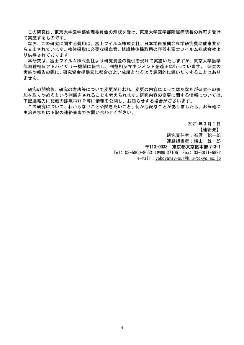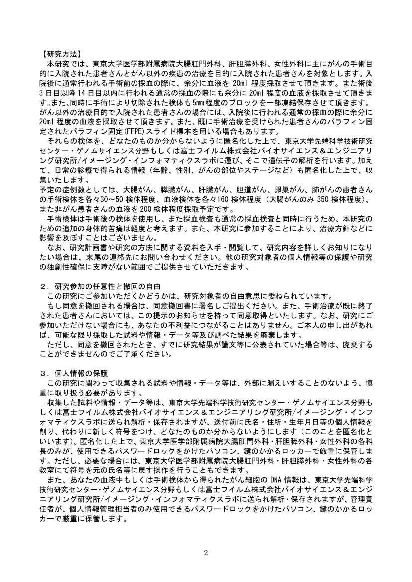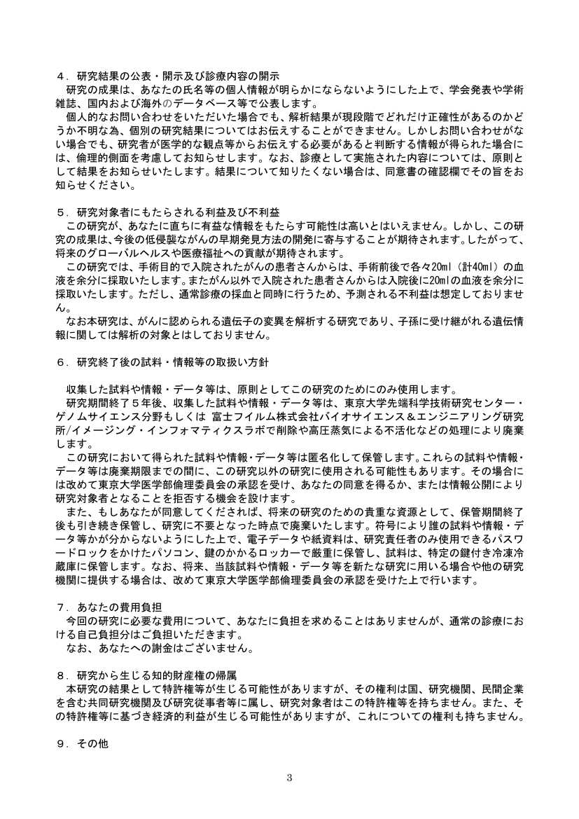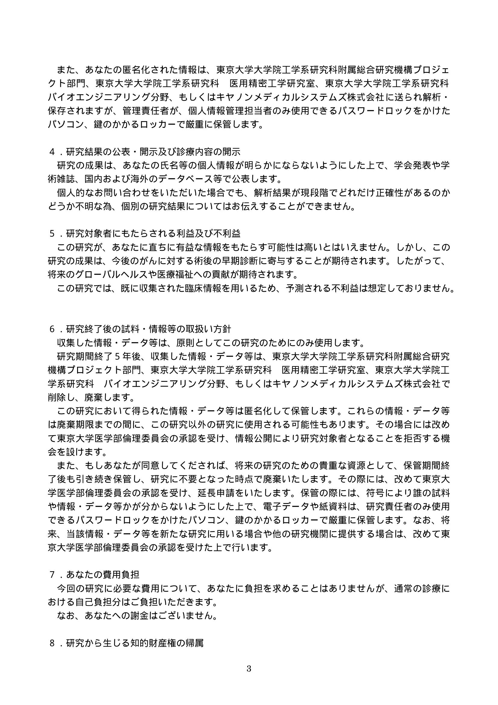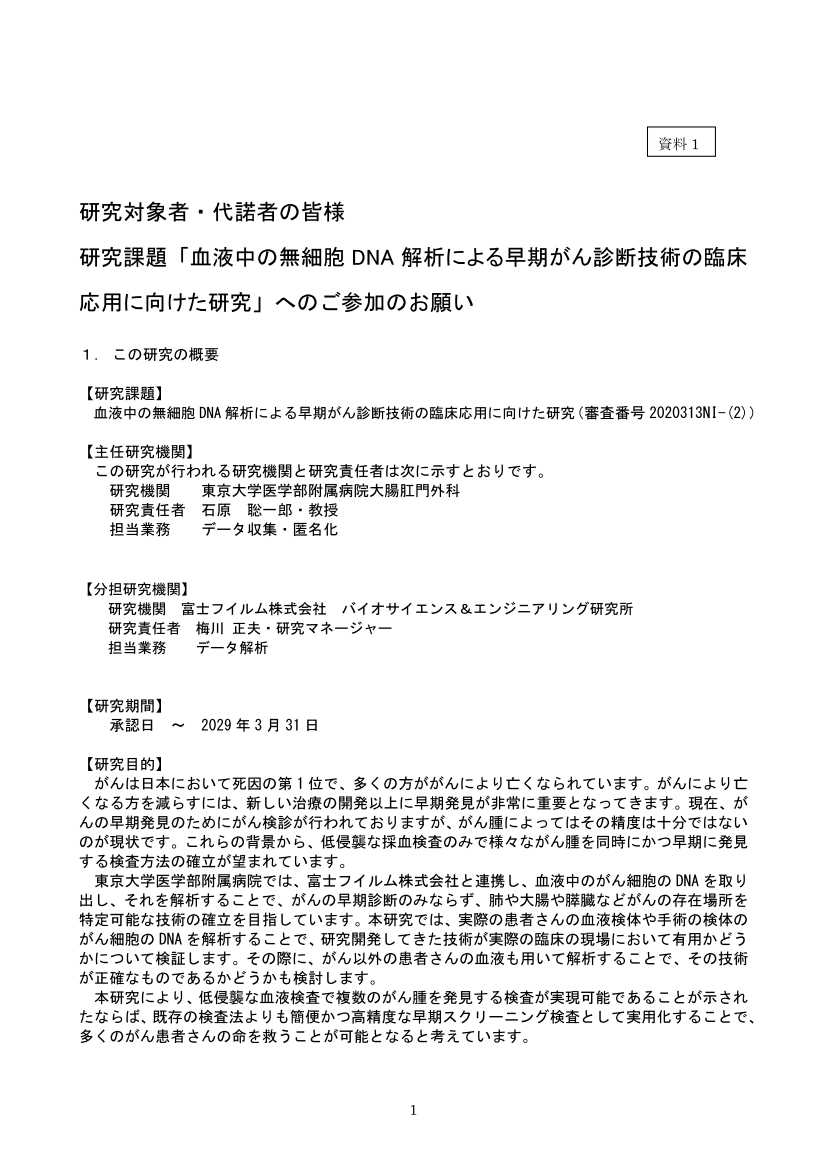 ・血液中の無細胞DNA解析による早期がん診断技術の臨床応用に向けた研究 [倫理委員会番号2020313NI-(2)]