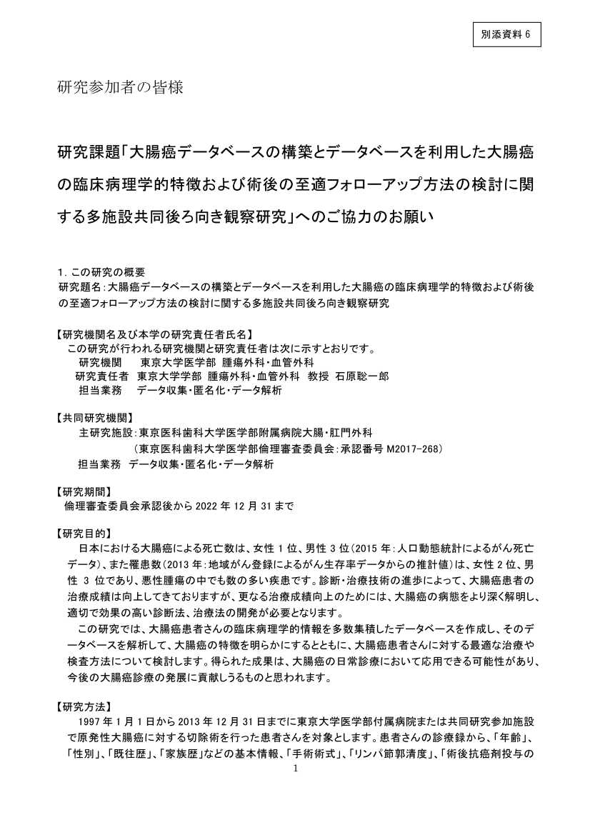 ・大腸癌データベースの構築とデータベースを利用した大腸癌の臨床病理学的特徴および術後の至適フォローアップ方法の検討に関する多施設共同後ろ向き観察研究