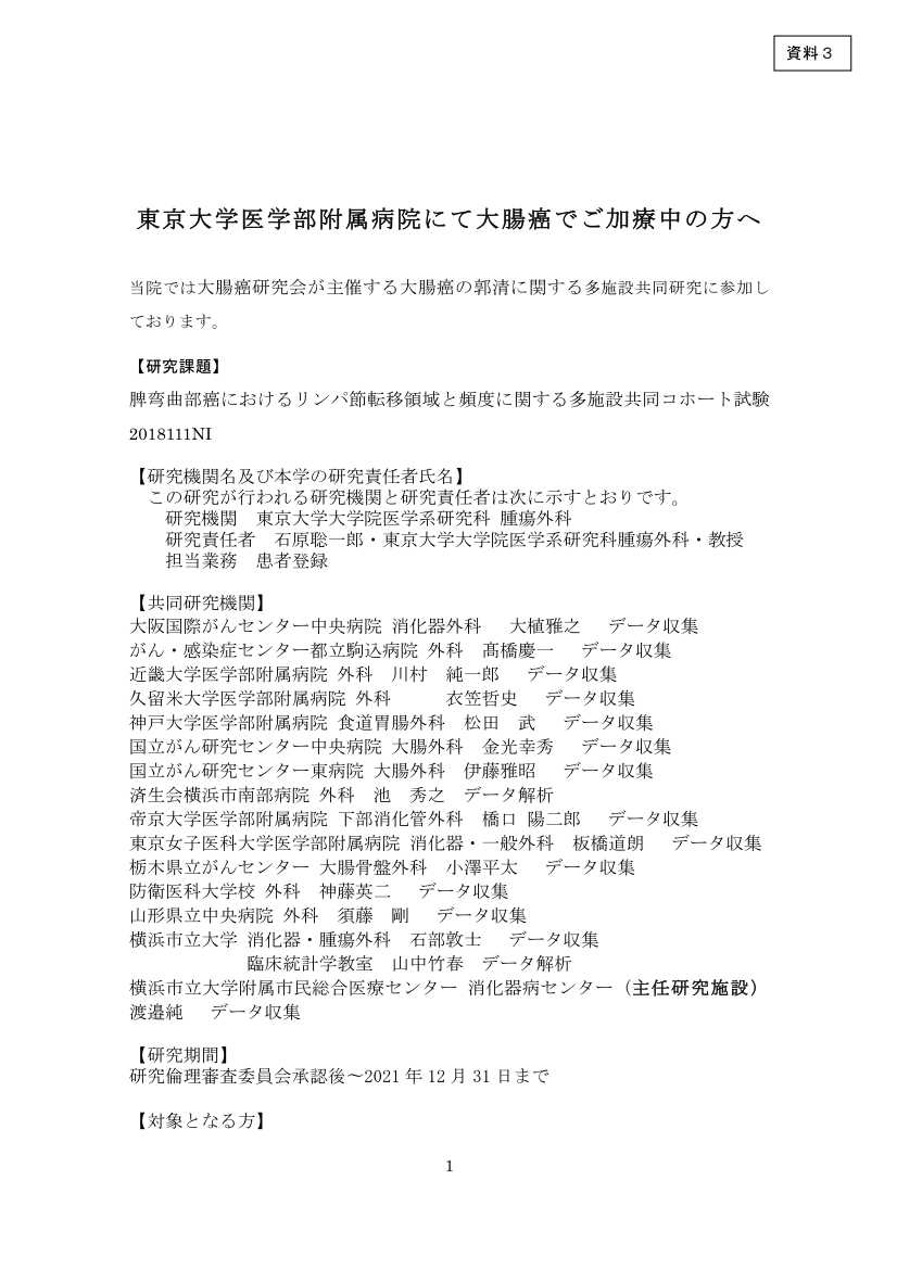 ・脾弯曲部癌におけるリンパ節転移領域と頻度に関する多施設共同コホート試験