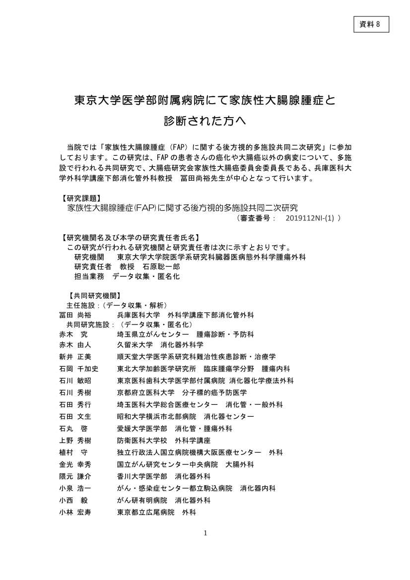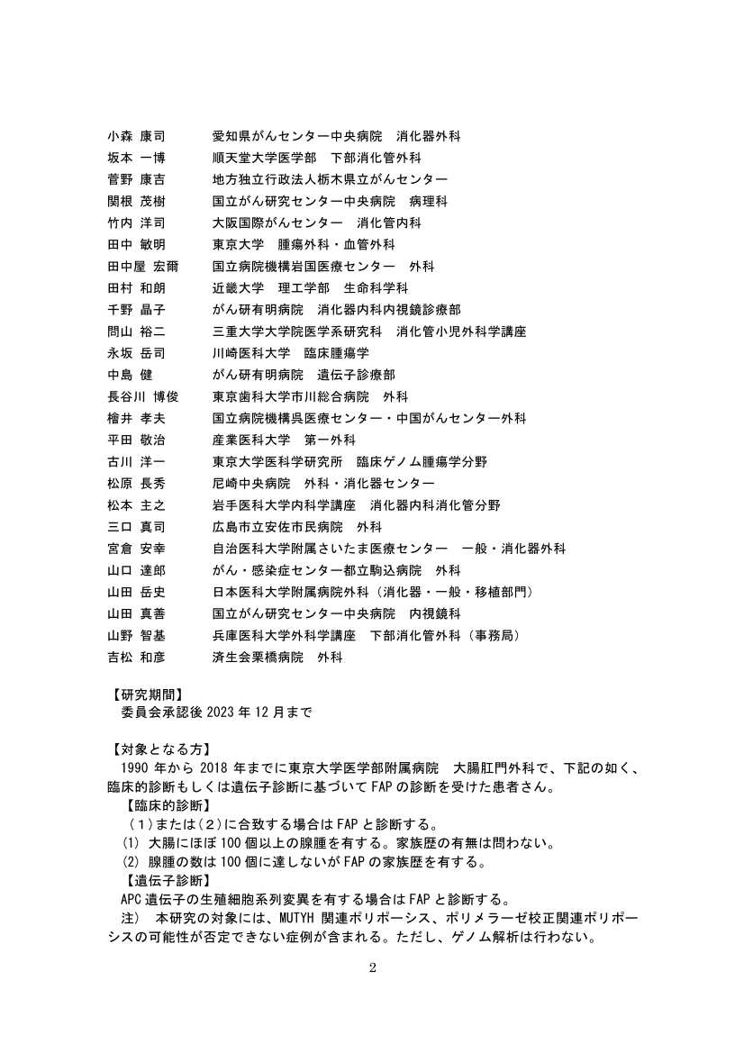 ・家族性大腸腺腫症(FAP)に関する後方視的多施設共同二次研究