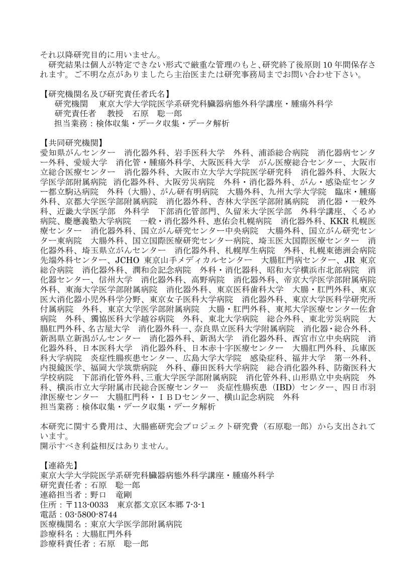 ・大腸・肛門疾患の臨床病理学的・遺伝学的後ろ向き解析ならびに前向き観察研究:多施設共同研究