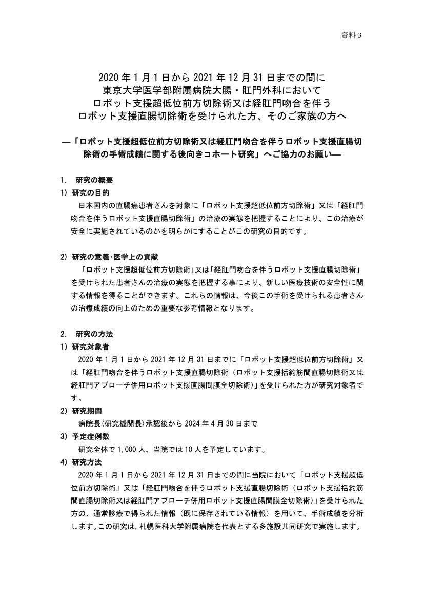 ・ロボット支援超低位前方切除術又は経肛門吻合を伴うロボット支援直腸切除術の手術成績に関する後向きコホート研究