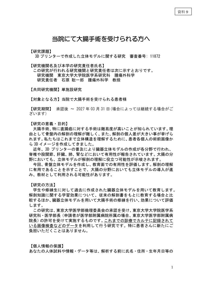 ・3Dプリンターで作成した立体モデルに関する研究 [倫理委員会番号11872-(4)]